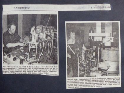 Die Norm schaffte ich innerhalb kurzer Zeit, so dass unser jetziger Betriebschef D. Pispeng (Name geändert) den Schichtleiter fragte, ob ich den Zähler manipulieren könnte. Das war aber nicht der Fall, viele staunten, dass ich auch in Leistung arbeiten kann (diese Info habe ich erst viele Jahre nach der Wende erfahren).