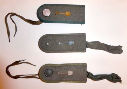 Wir wurden nach dem Winterbefehl eingekleidet und bekamen die komplette Ausrüstung, Arbeits- und Ausgehuniformen, Schuhe und Stiefel bis zur Unterwäsche mit Strümpfe. Unsere Schulterstücke zierten goldene Spaten! Darauf war ich besonders sehr stolz. Später wurde das Gold mit Grau überspritzt und in der letzten Zeit war nur ein aufgestickter Spaten zu sehen. Ich habe alle drei Spaten mit den jeweiligen Schulterstücken mit heimgebracht, siehe Bild.
